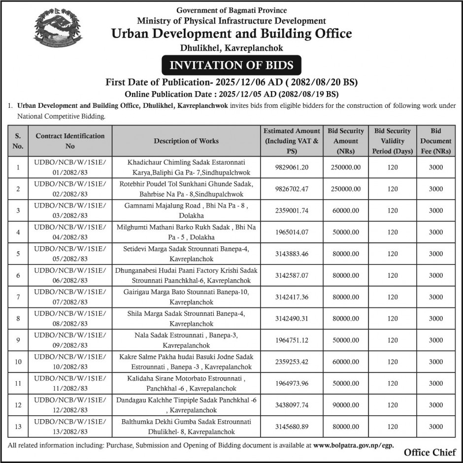 बोलपत्र आव्हान सम्बन्धि सुचना